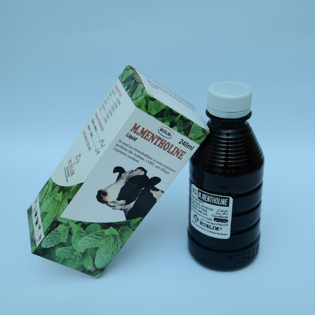M.Mentholine 240ml is a highly effective herbal remedy designed to reduce and discharge mucus accumulation from respiratory cavities. It helps clear air passages in the lungs, improving respiration and easing breathing difficulties. Additionally, it boosts resistance to various respiratory infections, promotes growth rate, and enhances feed conversion efficiency.